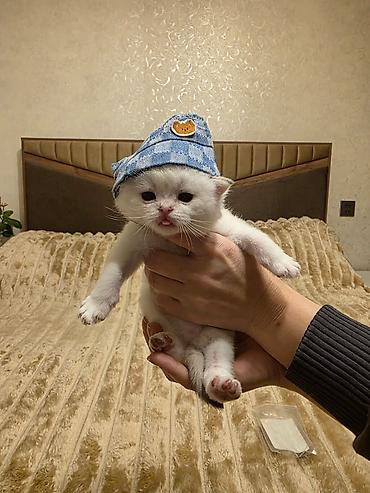 Ağ rəngli Scottish Fold balası - Cins: Scottish Fold (qatlanmış qulaqlar) - Rəng: tam ağ, yumşaq və sıx tüklü - Gözlər: iri və ifadəli - Xasiyyət: sakit, mehriban və ev şəraitinə tez uyğunlaşan; q...