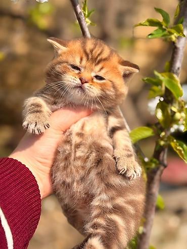 British qızılı rəngdə pişik balaları - Cins: British Shorthair/Golden (klassik qızılı shaded/tabby rəng palitrası) - Xüsusiyyətlər: yumşaq, sıx tüklü xəz; iri, yuvarlaq ifadəli gözlər; qısa və güc...
