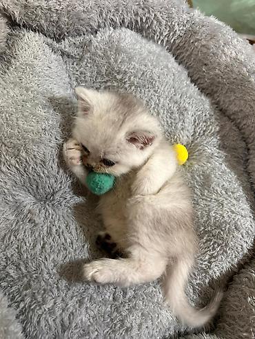 Britiş Şorthair balaları möhkəm quruluşu, az səsli və sakit davranışı, insanla yaxın təmasa meyilli olması ilə tanınır. Bu gümüş kölgəli balaca evə tez uyğunlaşır, oyun və nəvazişdən zövq alır.