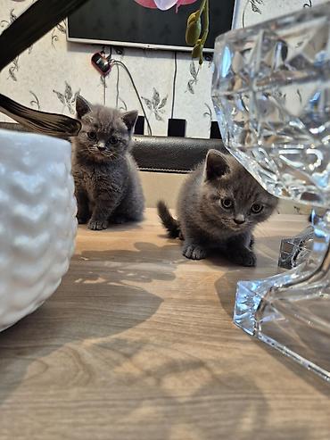 - Şəkillərdə: Eyni bala qrupundan iki boz pişik balası göstərilib; sıx yun örtüyü və kompakt bədən quruluşu ilə seçilirlər