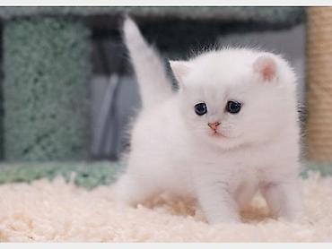 Skottiş Fold balası – Blue point şinşila , mavi gözlü, krem-rəngli point (ears, pəncələr və quyruqda tünd-boz tonlar) rəng damarı ilə. Qıvrıq/qulaqcıqlı baş quruluşu, iri dəyirmi gözlər, kompakt bə...