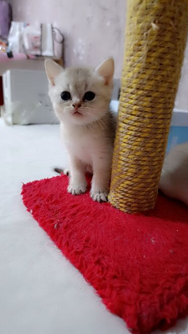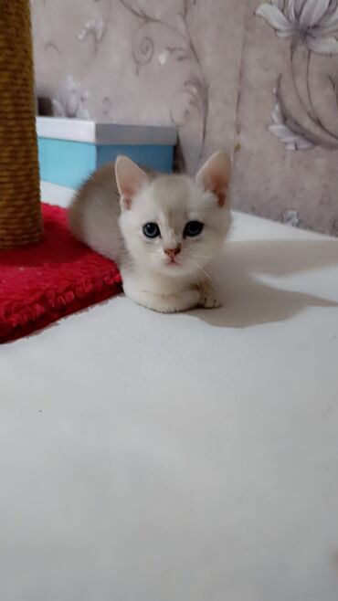 Britaniyalı qısa tüklü ağ balaca pişik balası - Cins: British Shorthair (ağ rəng, qısa və yumşaq tüklü) - Göz rəngi: tünd maviyə çalan - Yaş: balacadır (şəkillərdə görünən) - Xarakter: sakit, mehr...