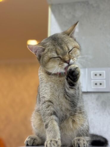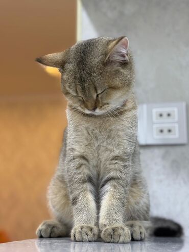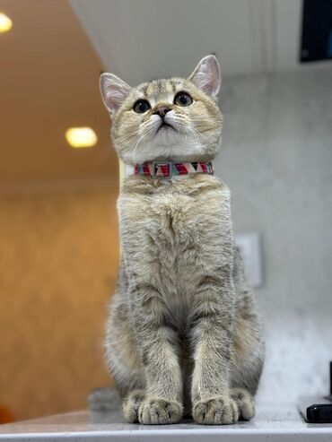 Britaniya qısatüklü (British Shorthair) tipli gözəl ev pişiyi. - Rəng: qızılı-şəbək (golden shaded), tüklər sıx və yumşaqdır - Gözlər: iri, yaşıl-mavi çalar - Quşqulaq ucları yığcam, yanaqlar dolud...