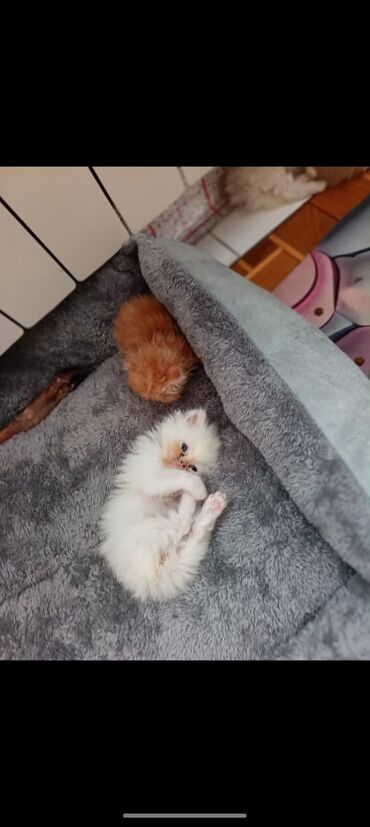 Zərif və çox tüklü balaca pişiklər – qızılı-krem rəng keçidləri, ağ sinə və pəncələr, iri mavi gözlər. Yumşaq, sıx, uzun tüklü örtük; qısa burun, dairəvi üz forması və balaca qulaqlar onları daha d...
