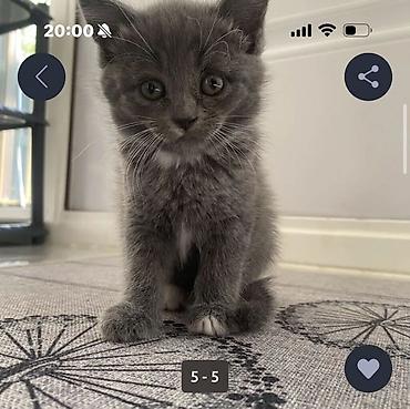 Britaniya qısa tüklü (British Shorthair) balası - Rəng: bərk boz (blue/grey) - Cinsi: ehtimalən dişi (balacadır, dəqiqlik sonradan təsdiqlənə bilər) - Xasiyyət: sakit, mehriban, qucağı və oyuncaql...