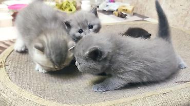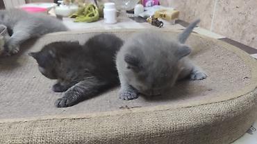 Boz rəngli şotland pişik balaları - Cins: Scottish Fold (sallanan qulaqlı) və Scottish Straight (düz qulaqlı) balalar - Rəng: tam boz (blue/grey), vahid tük örtüyü - Xüsusiyyətlər: yumşaq, sıx xəz...