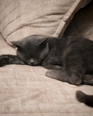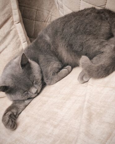 Britaniya qısa tüklü (British Shorthair) tipli boz (blue/boz-bej) pişik Xüsusiyyətlər: - Qısa, sıx və parlaq tük örtüyü – təkrəng boz ton - Yumru baş quruluşu, geniş yanaqlar, kiçik qulaqlar - Par...