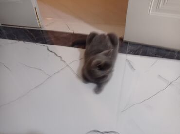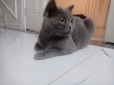 Britaniya qısatüklü (British Shorthair) boz rəngli pişik.