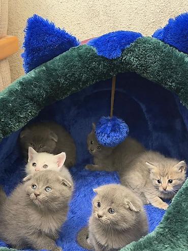 Britaniya və Şotland pişik balaları - Cinslər: Britaniya Qısa tüklü (boz/cream rənglər), Şotland Fold (aşağı qatlanan qulaqlar, ağ-krem naxışlı), həmçinin uzun tüklü, ağ rəngli Pers tipli balalar....