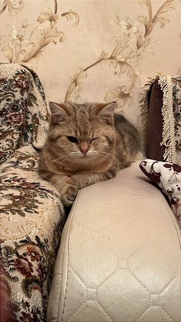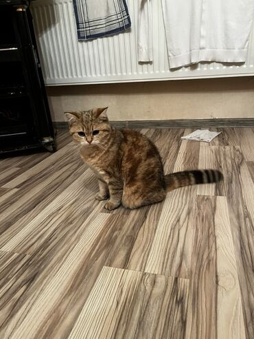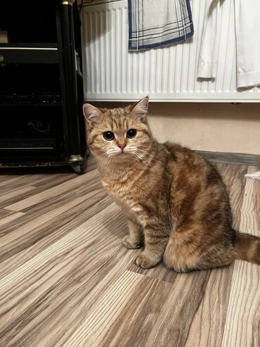 Boz-ağ rəngli ev pişiyi - Qısa tüklü, zərif və ahəngdar bədən quruluşu - Boz kürk, sinə və burun hissəsində ağ naxış, ağ pəncələr - Sarımtıl-golden gözlər, çənəaltı və bığ hissəsi ağ - Yaşıl rəngl...