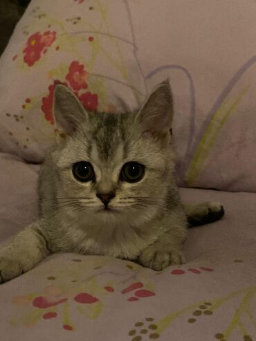Shotland pisik balasi - Cins: Scottish Fold (yığılmış qulaqlı) - Rəng: boz-qümüşü tük örtüyü, yüngül naxışlı - Yaş: 2 ayliq - Xarakter: mehriban, sakit, qucağı sevən; ev şəraitinə tez uyğunlaşır -...