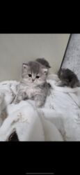 Skottish Fold bala pişiklər - Rənglər: boz (solid grey) və ağ-boz naxışlı. - Qulaqlar: qatlanmış (Fold). - Gözlər: iri, ifadəli. - Xasiyyət: mehriban, oynaq, ailə ilə ünsiyyətcil; səbirlə qucaqda ...