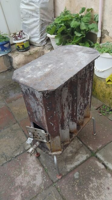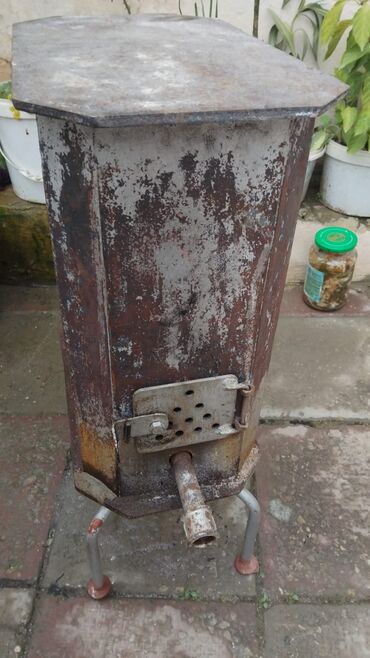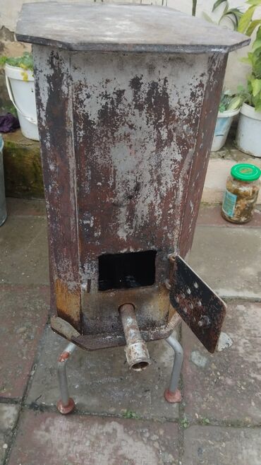 Məhsul: Metal soba/ocak (odun/komək üçün) - Material: Qalın metal gövdə, istiliyədavamlı. - Konstruksiya: Aşağıda möhkəm dayaq ayaqları, ön hissədə hava tənzimləmə klapanlı qapı və kül çıxarma dəl...