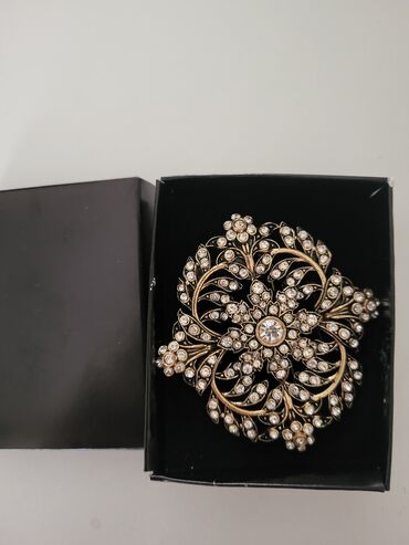 1) Новая брошь, в коробке, ручная работа, Клевер с кристаллами, на булавке - 45AZN 2) Новая брошь, в коробке, цветок из полимерной глины, посередине крупная бежевая бусинка и мелкие стразы. Крепитс...