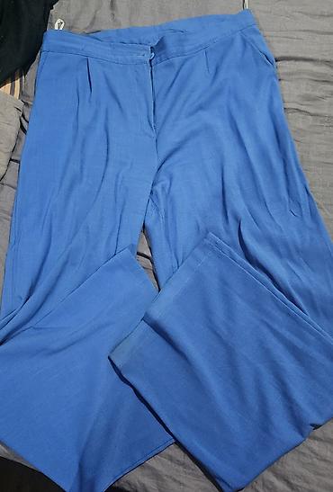 Ensiz biçimli, yüksək belli, açıq rəngli şalvar. Ölçüsü 42/XL-dir. Yan