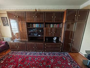- 1 ədəd iri divar dolabı-seksiya (kitab rəfi, şüşəli vitrin, qapalı şkaf bölmələri, alt hissədə çekmecələr və qapalı dolablar, yanlarda hündür şkaf bölmələri ilə)