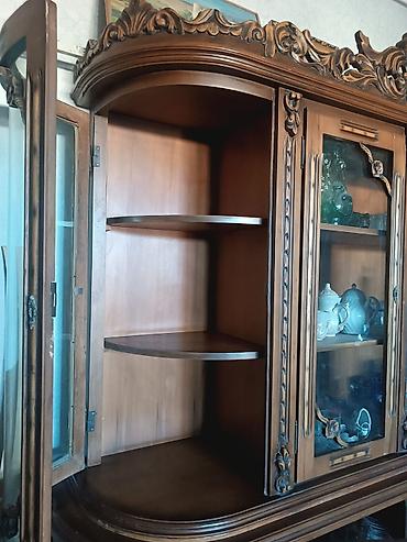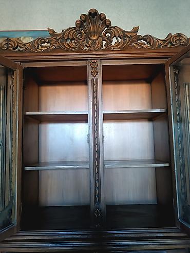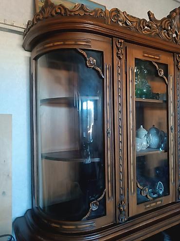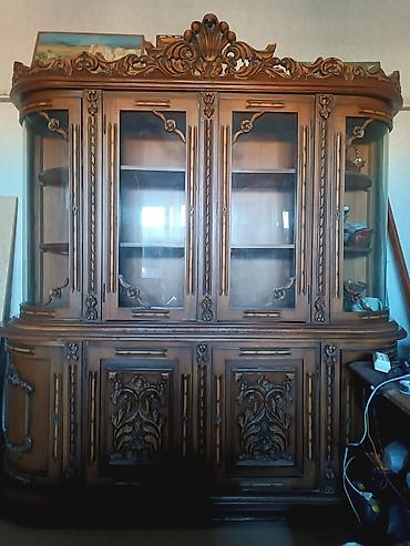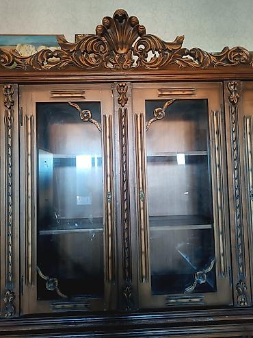 Klassik üslubda qonaq otağı dəsti: - Şüşəli Bar. - Yumşaq mebel: 3 hissədən ibarət. - 3 nəfərlik divan - 2 ədəd geniş kreslo - Taxta karkas, əl işləməli dekorativ oyma elementlər - Qızılı-b...