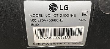 Köhnə oyun konsolları, retro video qurğuları və analoq mənbələrlə istifadə üçün əlverişli klassik LG CRT televizor. Model etiketi və texniki məlumatları arxa hissədə mövcuddur.