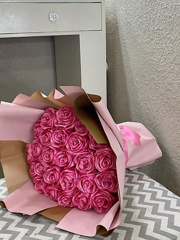 Hədiyyəlik gül buketi sifarişlə yığılır. Lentlə yığılan gül buketi 30 azn, sabun gülü ilə yığılan buket 50azn. Gül sayına görə qiymətlər fərqlidir. Whatsapp aktivdir.