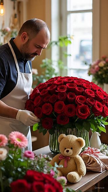 - Formatlar: əl buketi, vaza və səbət kompozisiyaları, masa üçün dekor, iri “101 gül” tərzi qızılgül kompozisiyası