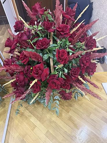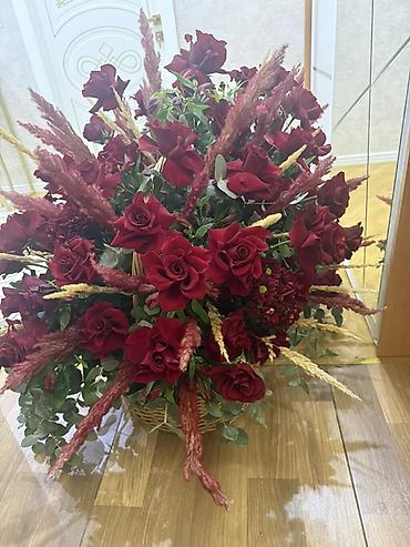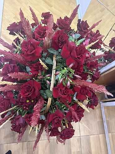 - Təbii qırmızı qızılgüllərdən hazırlanmış iri ölçülü səbət
