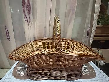Böyük ölçülü əl işı səbət - Material: təbii qamış/söyüd budaqlarından əl ilə hörülüb - Forma: enli, oval konusvari gövdə; yuxarı hissədə dalğalı kənar - Tutacaqlar: iki ədəd möhkəm, təbii taxta/şa...