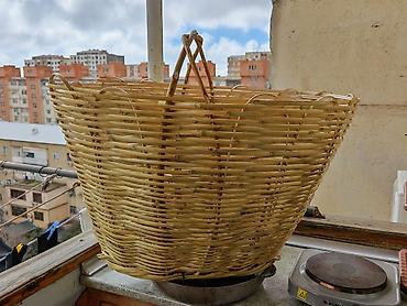 Böyük ölçülü əl işi səbət giymeti 15manat - Material: təbii qamış/söyüd çubuqları, əl ilə toxunma - Forma: oval, geniş ağızlı - Rəng: açıq sarı-tonlu təbii rəng - Tutacaqlar: ikili, möhkəm bərkidi...