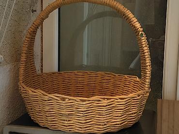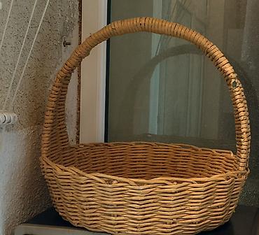 Böyük ölçülü əl işi səbət giymeti 15manat - Material: təbii qamış/söyüd çubuqları, əl ilə toxunma - Forma: oval, geniş ağızlı - Rəng: açıq sarı-tonlu təbii rəng - Tutacaqlar: ikili, möhkəm bərkidi...