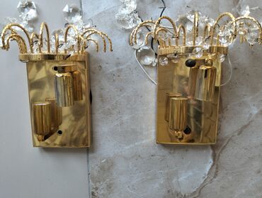 Qədimi üslubda bərli-bəzəkli divar bra cütü - Material: tökmə misi xatırladan ağır metal (qızılı rəng) - Üslub: klassik/barokko motivləri, mələk fiqurlu dekor, mürəkkəb oymalar və relyefli lövhə -...