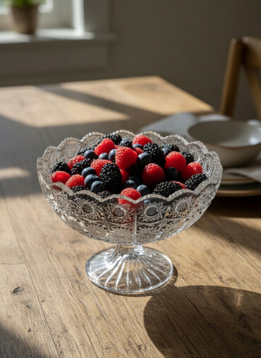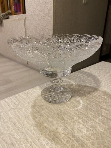 Kristal meyvə/ Xrustal yeke - Material: ağır və şəffaf kəsim kristal - Formalar: dərin, yuvarlaq; dalğalı kənar - Dekor: klassik “ulduz” və həndəsi naxışlı, işığı güclü şəkildə əks etdirir - Ölçü ...