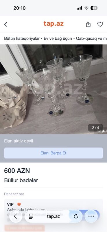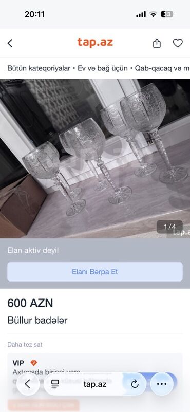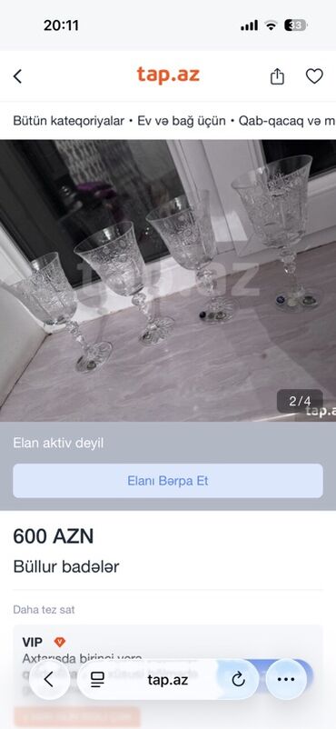 Şəkillərdə göstərildiyi kimi bir neçə ədəd qədəhdən ibarət komplektdir. Qiymət: 600 AZN.