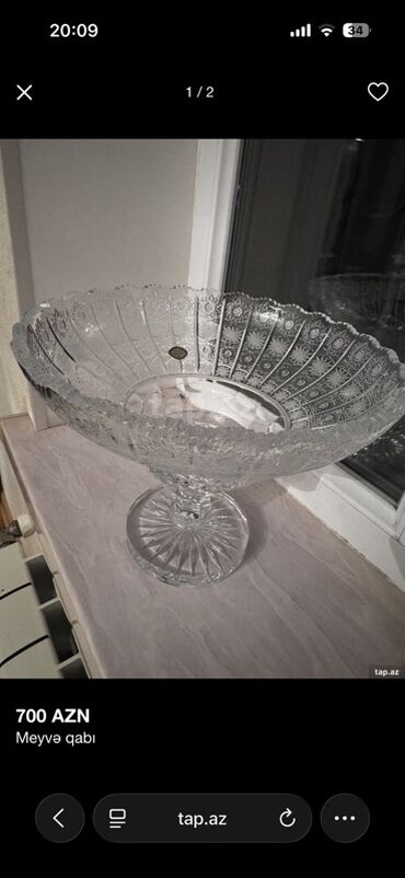 6 kicik bakal, 6 hundur bakal, 4 hundur agzi enli bakal, 4 hundur rumka , 2 eded 30 sm meyve qabi tomun temiz xrustal qablaridir. Hamisi biryerde 900azn vererem. Kəsma naxışlı kristal qədəh dəst...
