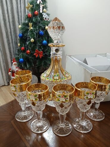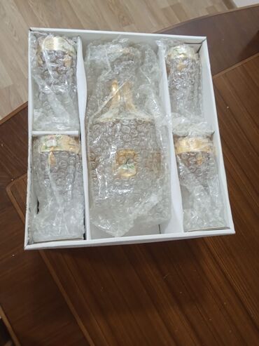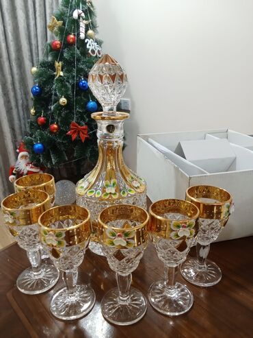 - Komplekt: 1 qraf (şüşə qapaqlı) + 6 ayaqlı qədəh