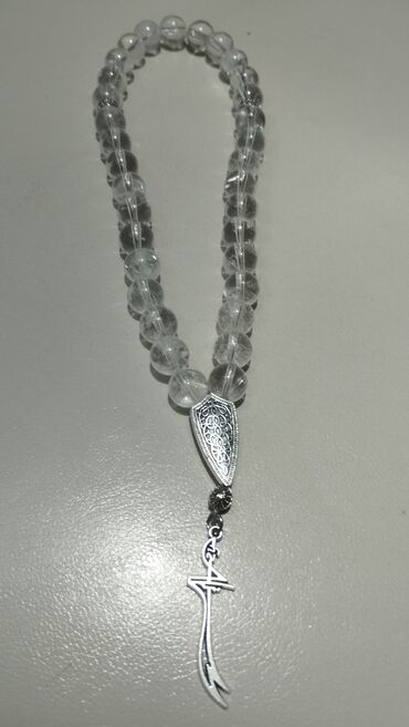 Dur nəcəf daşı deyirlər billur orginal natural təbii təsbeh Zülfüqar qılınc ilə hz Əli yazılıb tapılmır bizdə var
