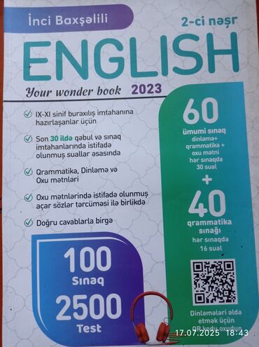 : İngilis dili – Buraxılış imtahanı 2024 vəsaiti 🔴Xüsusiyyətlər:✅✅👇👇 - 🔴Dövlət İmtahan Mərkəzinin nəşri - 🔴Ümumi orta (9 illik) təhsil səviyyəsi üzrə buraxılış imtahanının yeni modelinə uyğun - 🔴2...