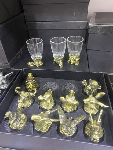 Heyvan fiqurları ilə bəzədilmiş dekorativ atış şüşələri dəsti. Dəstə bir qutuya yerləşdirilmiş 12 ədəd müxtəlif heyvan fiquru və üç ədəd qısa, şəffaf atış şüşəsi daxildir. Şüşələr yuvarlaq oturacaq...