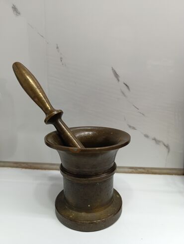 Mis ilə latunun qarışığı olan klassik həvəng və dəstək (havan). 50-60 cı illərə aid olan ağır, yığcam və balanslı quruluşu sayəsində ədviyyat, dənəvər duz, otlar, toxumlar, qoz-fındıq və dərman bitkilərini əzmək, üyütmək və qarışdırmaq üçün ideal alətdir.