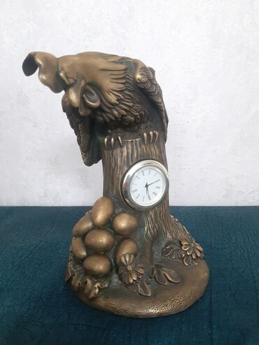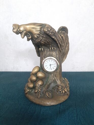 Bürünc rəngli dekorativ masa saatı – xoruz fiqurlu latun