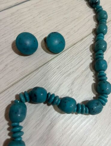 Firuzə daşından dəst. Qolbağı rezindir. Kiçik muncuqlar və zənciri bujiteriyadır. Sırğası da var. Digər elanlara da girib baxa bilərsiniz.