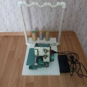 Sənaye overlok tikiş maşını – stol və pedallı komplekt - Tip: Overlok (kənar emalı və overlok tikişi üçün) - Komplekt: metal iş masasının üstündə quraşdırılmış maşın, ayaq pedalı, elektrik mühərri...