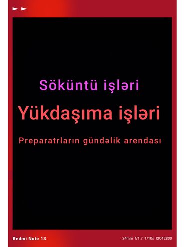 Söküntü, dağıntı, yükdaşıma, daş və qum işləri, həmçinin hər növ