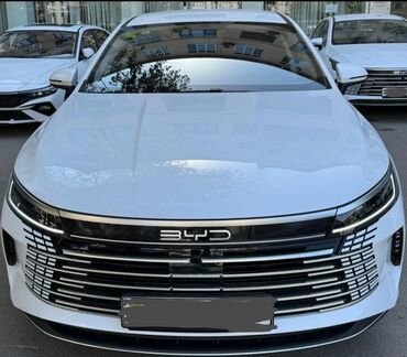 Model: Sedan, ağ rəng Brend/seriya: BYD (e1mblemdən göründüyü kimi) 2025 il təzə zavod Kuzov: 4 qapılı fastback/sedan Mühərrik: Plug‑in hibrid və ya elektrik xəttinə bənzər ön barmaqlıq dizaynı (BY...