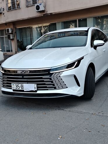 BYD elektrik sedan QALMAQ ŞƏRTİ İLƏ SATILIR. - Kuzov: ağ rəngli, aerodinamik ön dizayn, kəskin LED ön fənərlər, qara radiator barmaqlığı - Güc aqreqatı: tam elektrik - Salon: müasir minimalistik ...