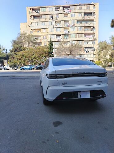 Model: Sedan, ağ rəng Brend/seriya: BYD (e1mblemdən göründüyü kimi) 2025 il təzə zavod Kuzov: 4 qapılı fastback/sedan Mühərrik: Plug‑in hibrid və ya elektrik xəttinə bənzər ön barmaqlıq dizaynı (BY...
