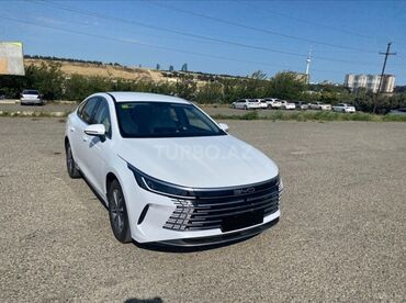 BYD sedan – ağ rəng, aerodinamik fastback kuzovlu. Xüsusiyyətlər: - Kuzov: 4 qapılı sedan, fastback tipli arxa hissə, tam LED ön-arka işıqlar, bütöv arxa işıq zolağı - Xarici dizayn: geniş xrom/qa...