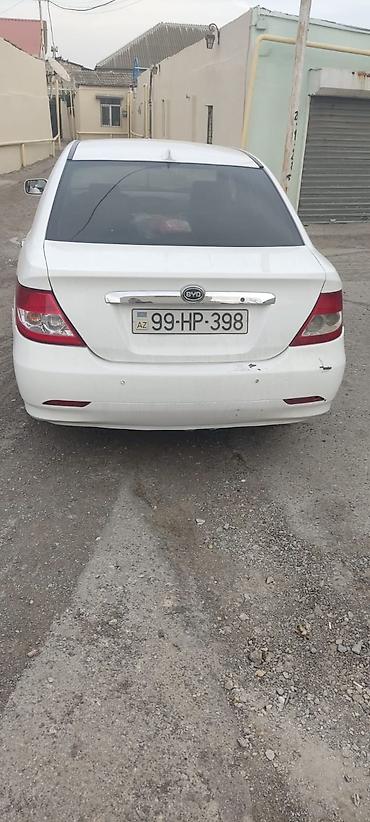 BYD F3 sedan – ağ rəng, 4 qapı, geniş salon. Texniki və interyer xüsusiyyətləri: - Sürətlər qutusu: mexaniki - Kuzov: sedan, aerodinamik xəttlər, yüngül lehimli disklər - Salon: qara rəngli dəri o...