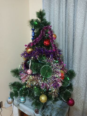 Yeni il üçün bəzədilmiş süni şam ağacı - Təxminən orta ölçülü süni
