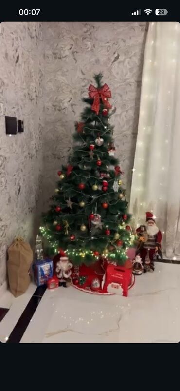 Komplekt olaraq ağac, işıqlar və üzərindəki müxtəlif oyuncaqlar/dekor elementləri daxildir.