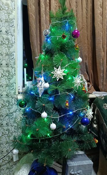 Süni Yeni il ağacı – dekorativ oyuncaqlarla. Real alıcı ilə qiymətdə