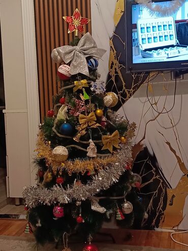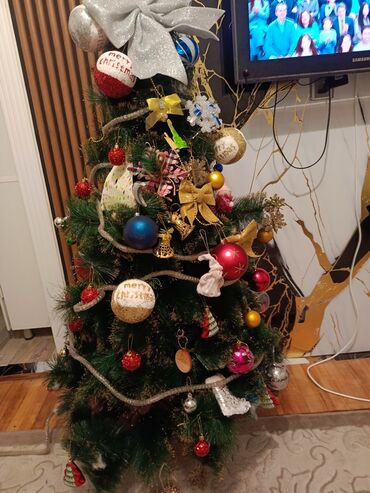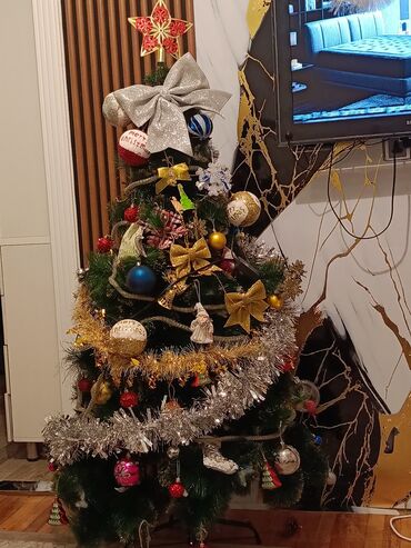 - Süni şam ağacı, orta ölçülü (təxmini 1,5–1,7 m hündürlük)